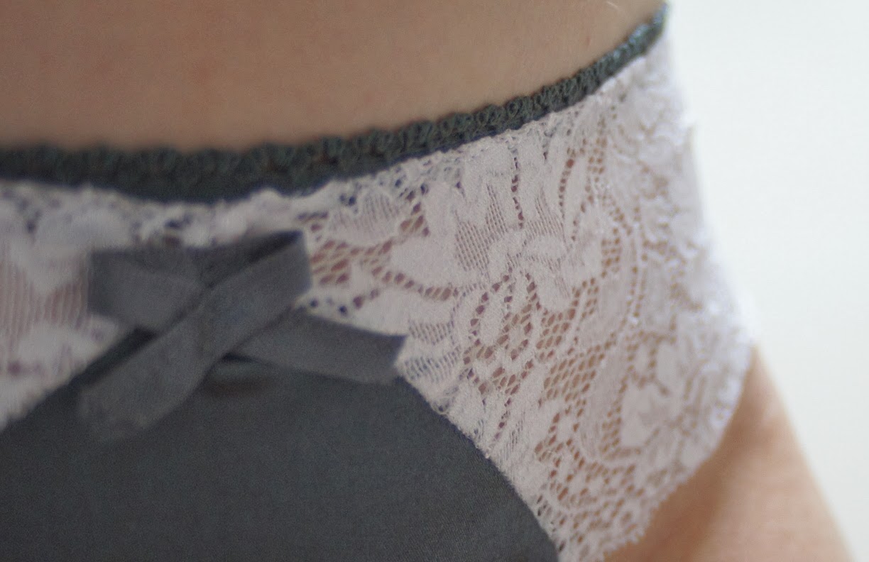 Mais pour la réalisation du jour, c'était surtout les fournitures qui me faisaient défaut, j'avais déjà le patron gratuit (choisir "lacey thong pattern") fourni en licence Creative Commons (c'est-à-dire en partage libre) pour ce string satin et dentelle.